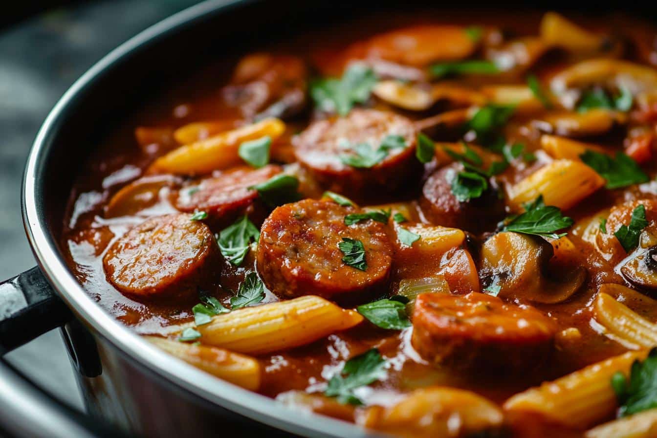 Busy night? This one-pot sausage and mushroom pasta recipe is your answer—savory, creamy, and effortless. One pot, big flavor, and minimal cleanup!